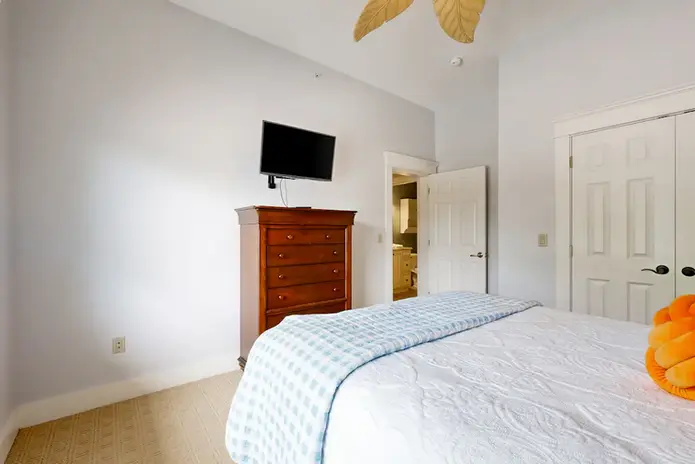 This beautiful waterfront two-story townhouse has spacious living quarters, a breakfast bar, dining area, comfortable living room with riverfront views, and a full kitchen laundry closet & half bath on 1st floor. There are three bedrooms on the 2nd floor level; one spacious master bedroom suite & bath with 1 king bed and a gorgeous waterfront view balcony off the master suite, two queen rooms each with a queen bed, and a 2nd full bathroom.